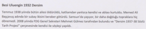 Juli 1938 wurde ihre ganze Familie getötet – nur sie und ihre ältere Schwester haben überlebt. Ein Offizier namens Memed Ali hat sie und ihre Schwester mit sich genommen (verschleppt). Sie lebt in Samsun und ist nie mehr nach Dersim zurückgekehrt. Im Jahr 2008 wurde sie von FDG-Generalsekretär Mehmet Gülmez gefunden und im Rahmen des Oral History-Projekts interviewt.